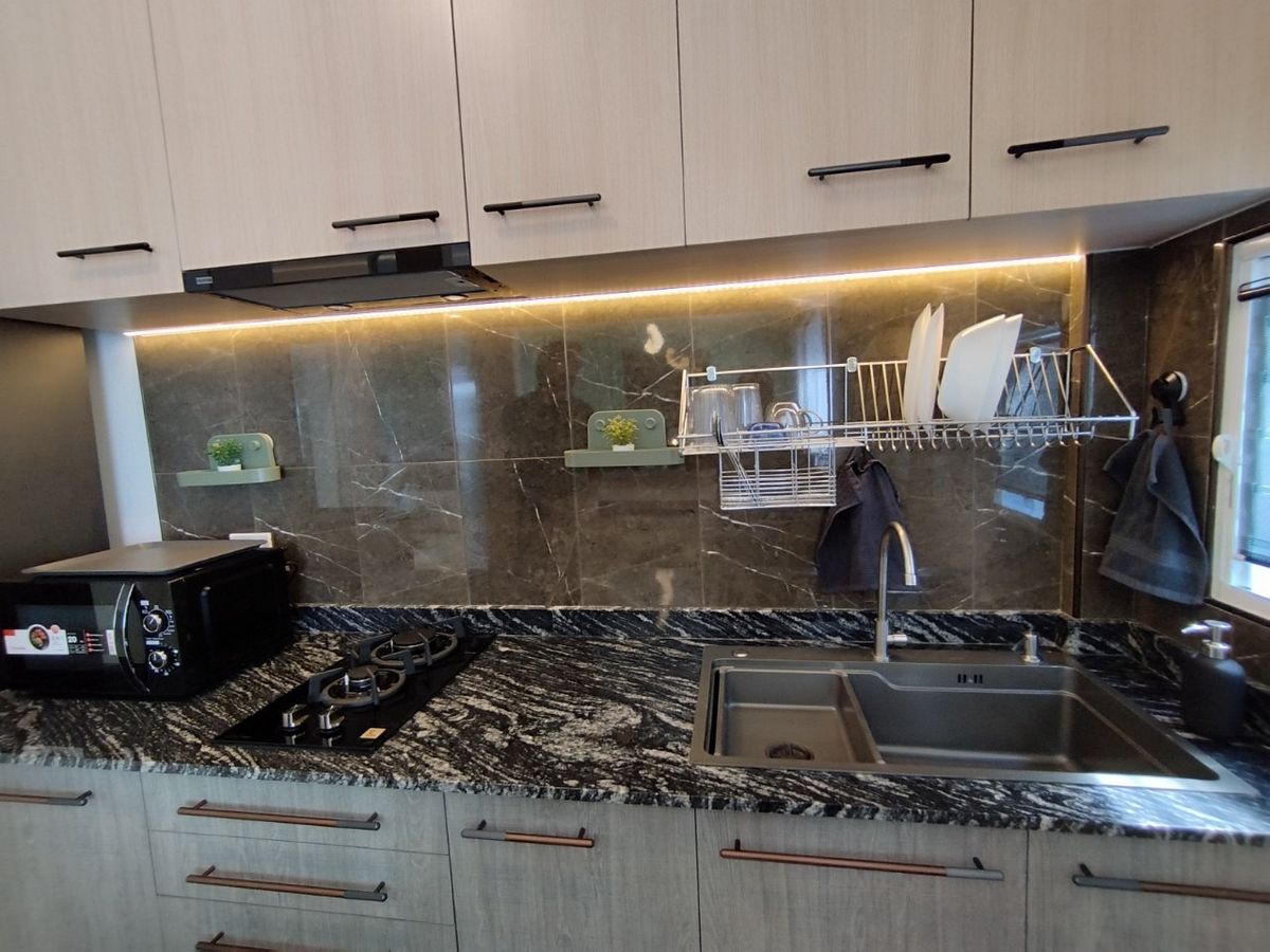 ✅Kitchen with Partition, Hop & Hood, อ่างล้างจานขนาด 80 cm พร้อมราวคว่ำจาน/แก้วน้ำ/ช้อนส้อม