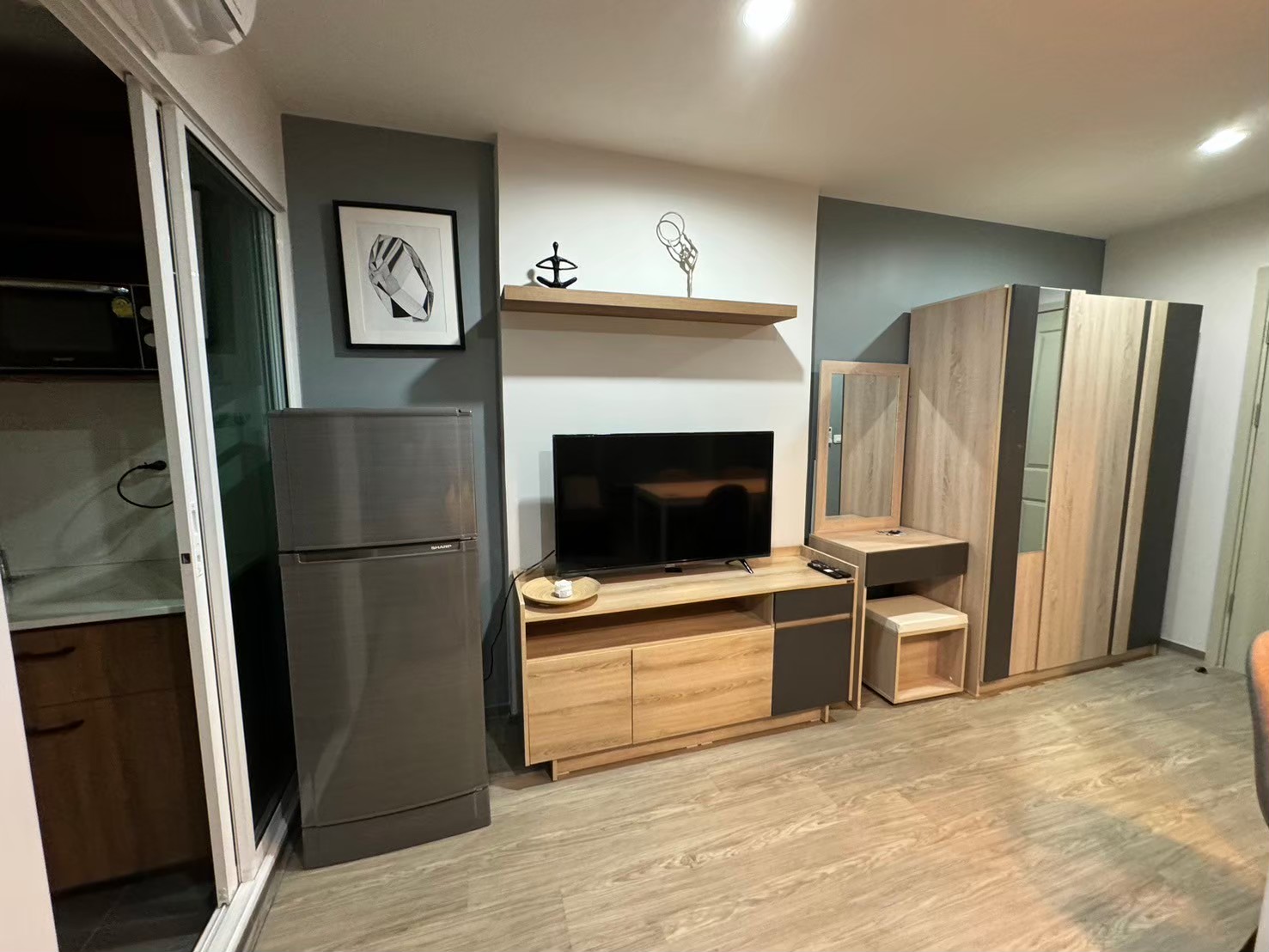 ภายในห้องมีเฟอร์นิเจอร์และเครื่องใช้ไฟฟ้า