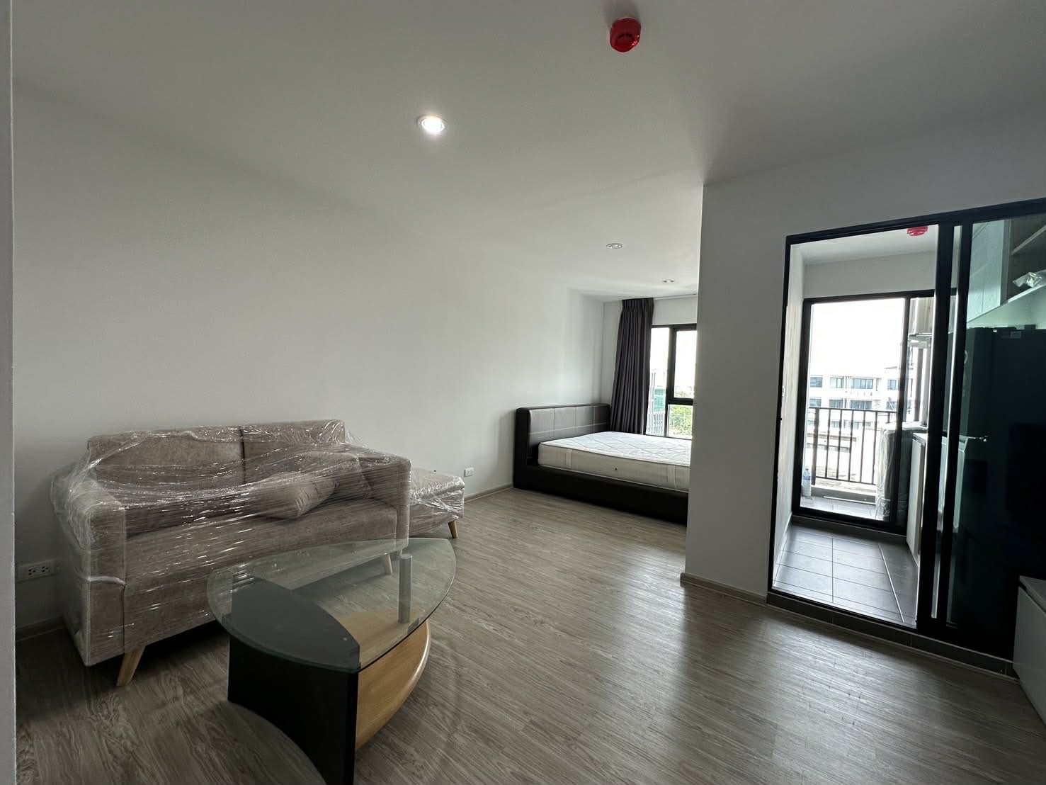 • มีกระจกกั้นห้องนอนและห้องนั่งเล่น