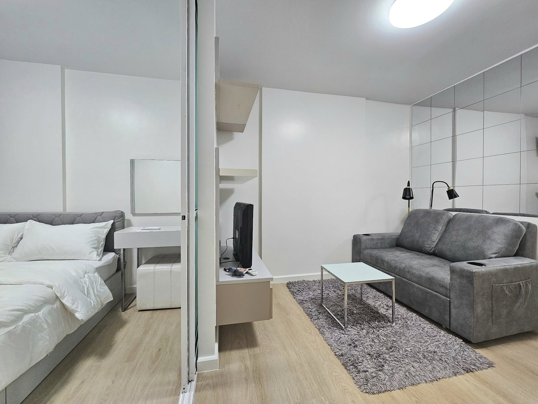 ✅ เฟอร์นิเจอร์: เตียงพร้อมที่นอน, ตู้เสื้อผ้า, โซฟาเบด
