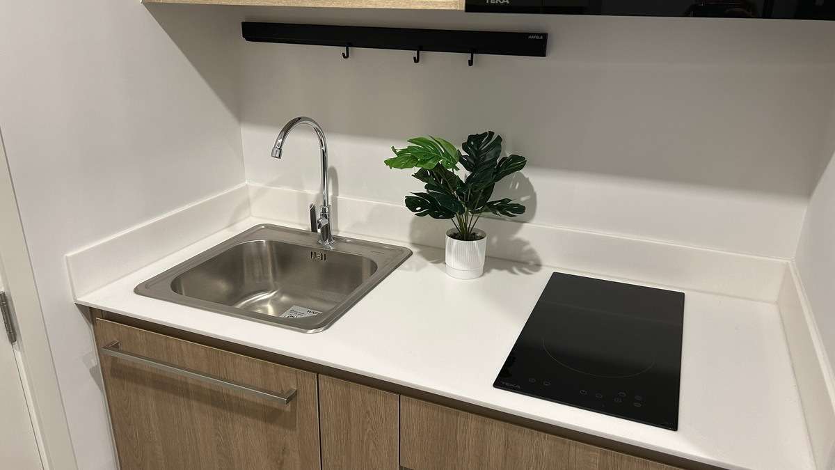 เตาไฟฟ้า + ฮู้ดดูดควัน / ซิงก์ล้างจาน / พัดลมระบายอากาศ / แอร์