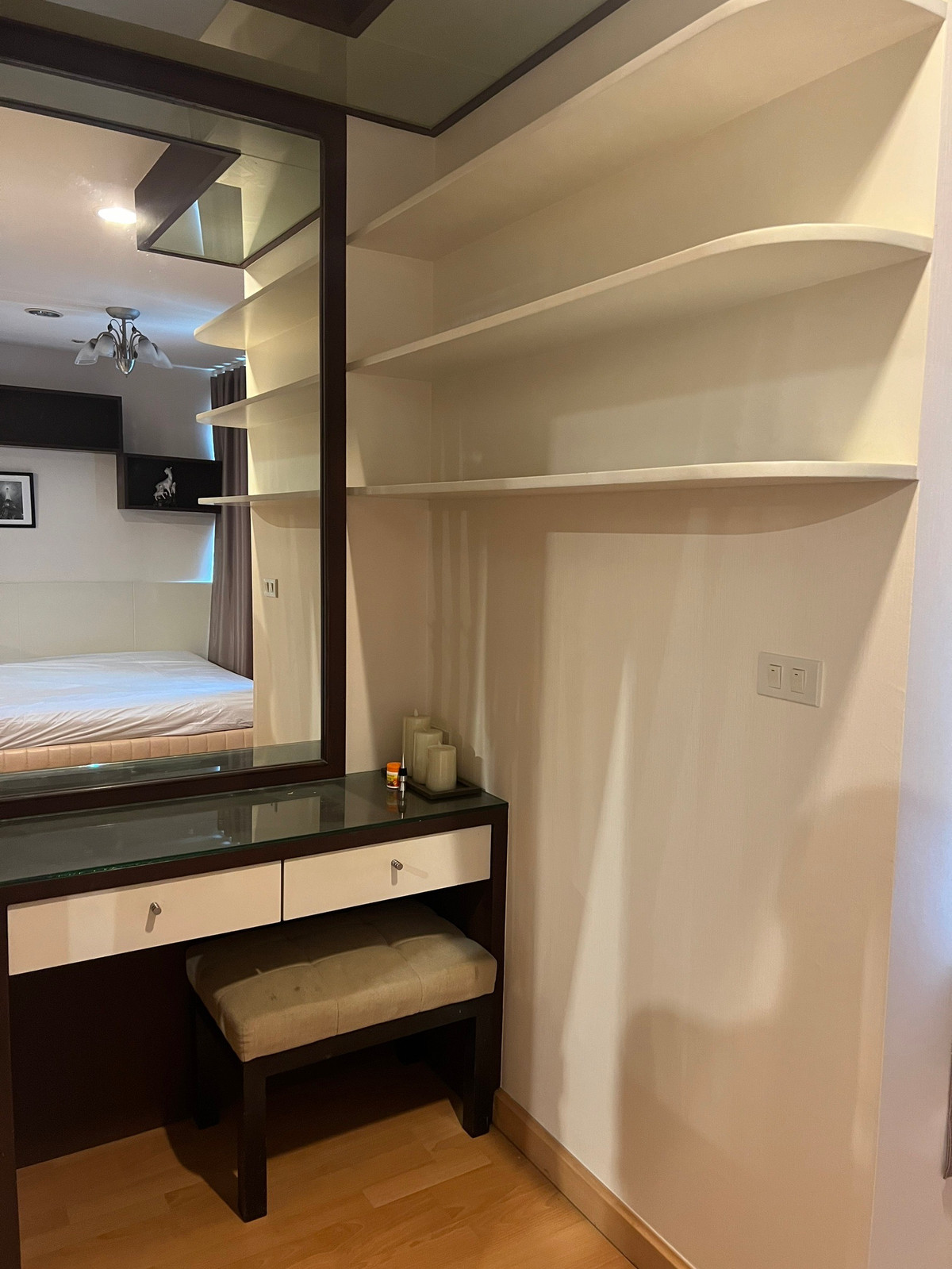 โซฟา โต๊ะทำงาน ตู้เสื้อผ้า โต๊ะเครื่องแป้ง และบิวท์อินแยกสัดส่วนห้อง