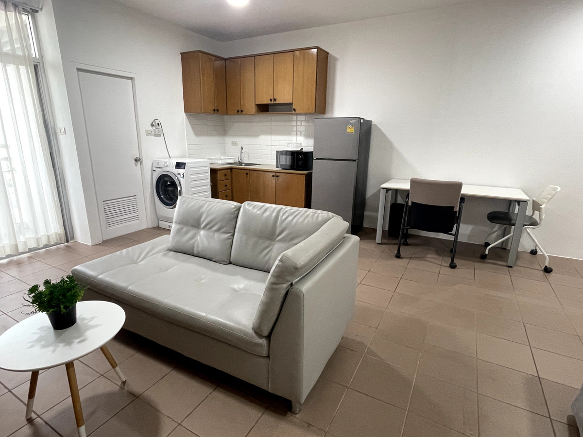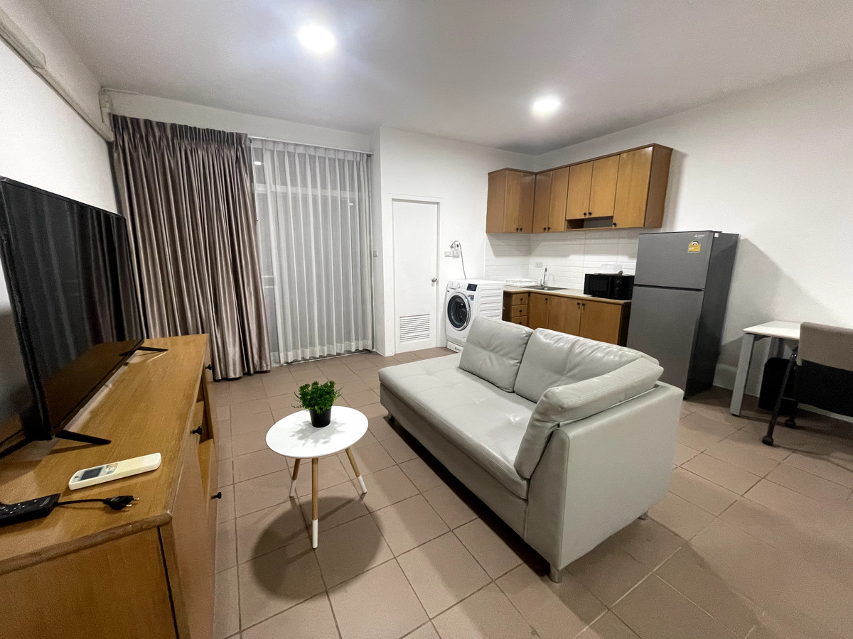 มีเฟอร์นิเจอร์ เช่น โซฟา โต๊ะทานอาหาร ผ้าม่าน และมุ้งลวด พร้อมที่จอดรถ 1 คัน