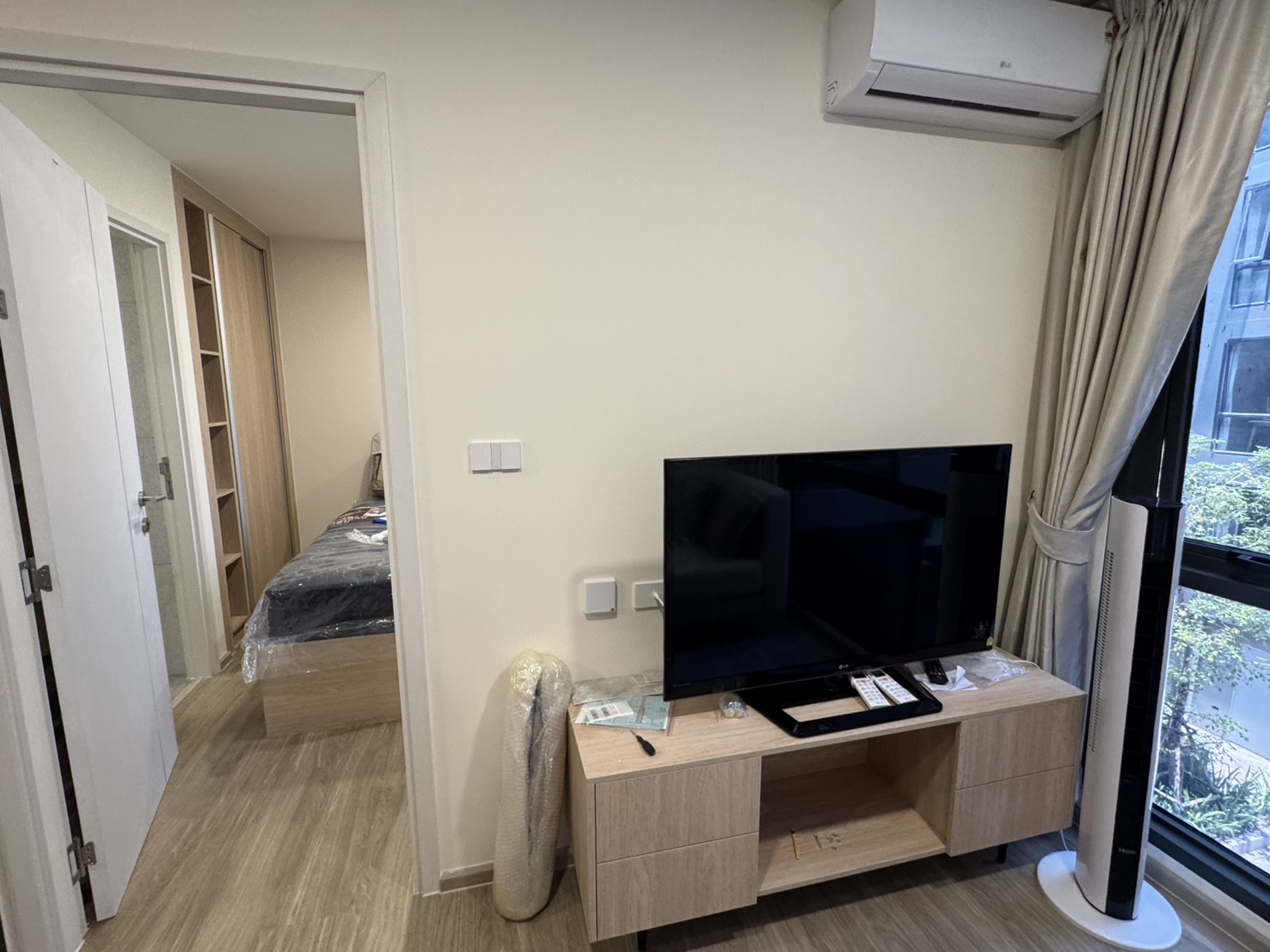 ภายในห้องมีเครื่องใช้ไฟฟ้าและเฟอร์นิเจอร์