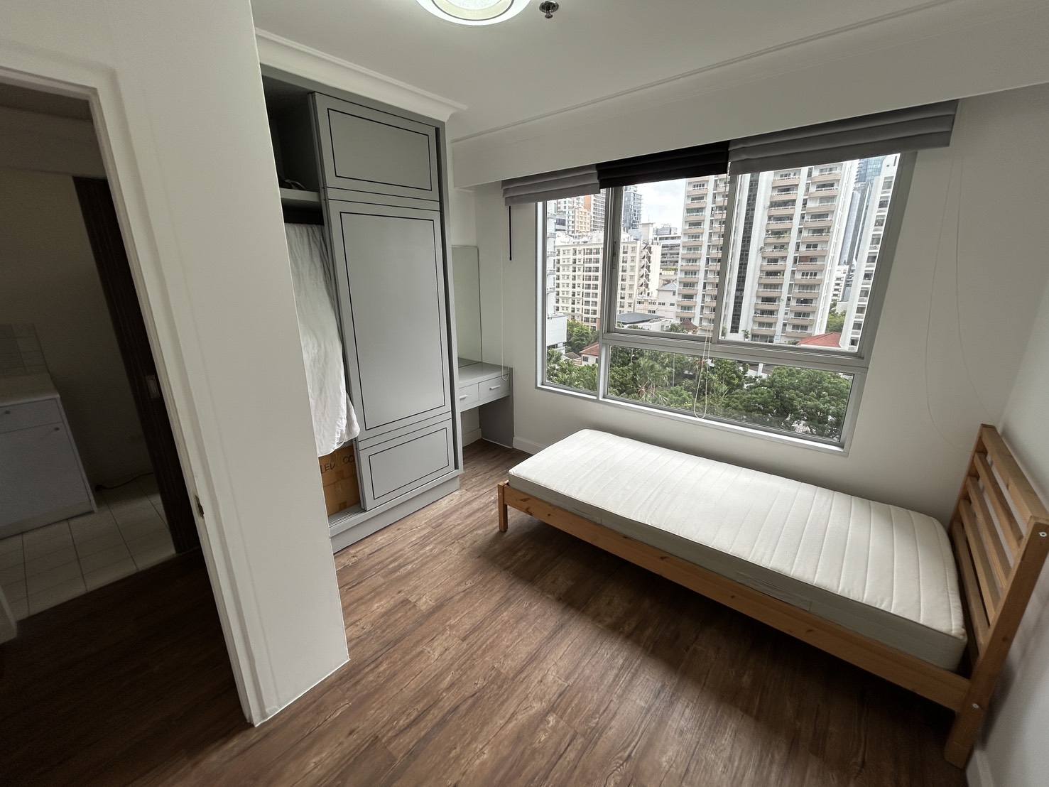 เตียง ตู้เสื้อผ้า แอร์ เครื่องทำน้ำอุ่น และชุดครัว