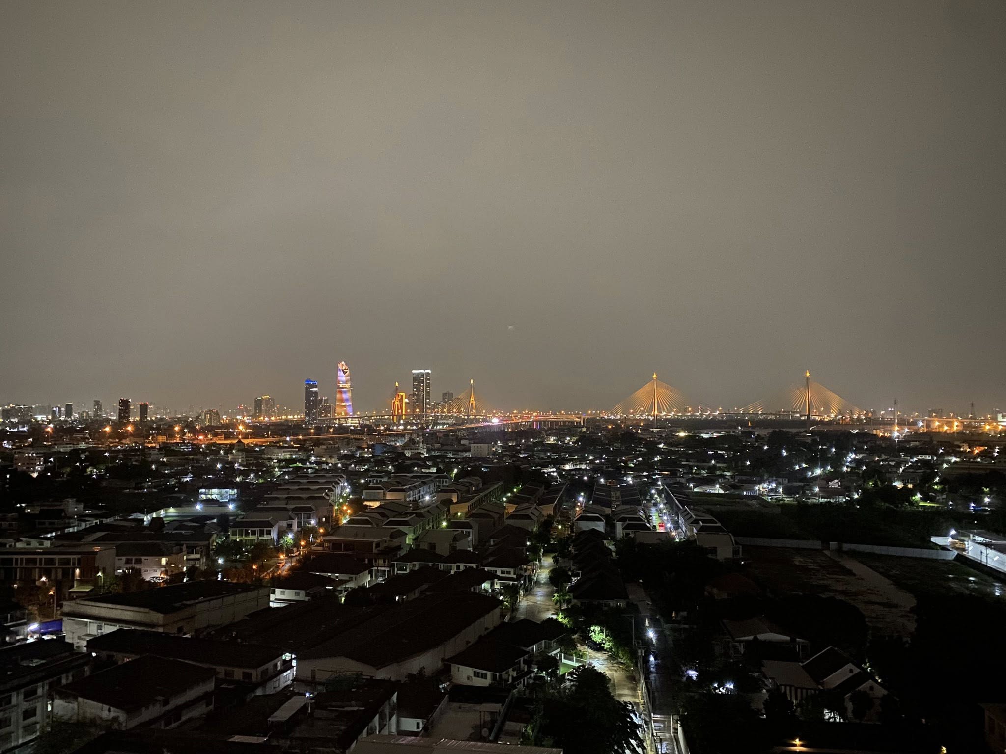 🌉 View of Bhumibol Bridge – Bang Krachao River bend (view from both bedrooms)