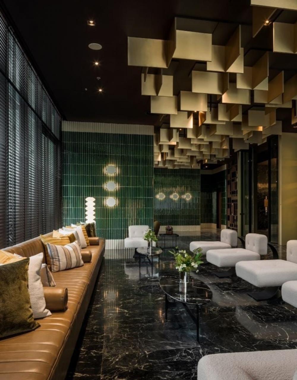 มีเฟอร์นิเจอร์ เช่น เตียง โซฟา โต๊ะทานอาหาร และตู้เสื้อผ้า