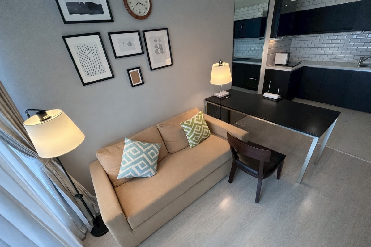 เตียง, โซฟา, โต๊ะทำงาน, ตู้เสื้อผ้า และครัวบิ้วท์อินพร้อมเตาไฟฟ้า+เครื่องดูดควัน