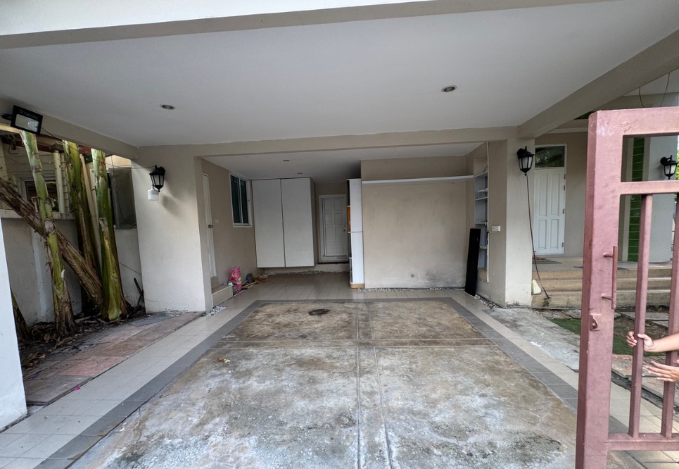 ✅ โรงจอดรถใหม่ดีไซน์เข้ากับตัวบ้าน พร้อมตู้และชั้นเก็บของ