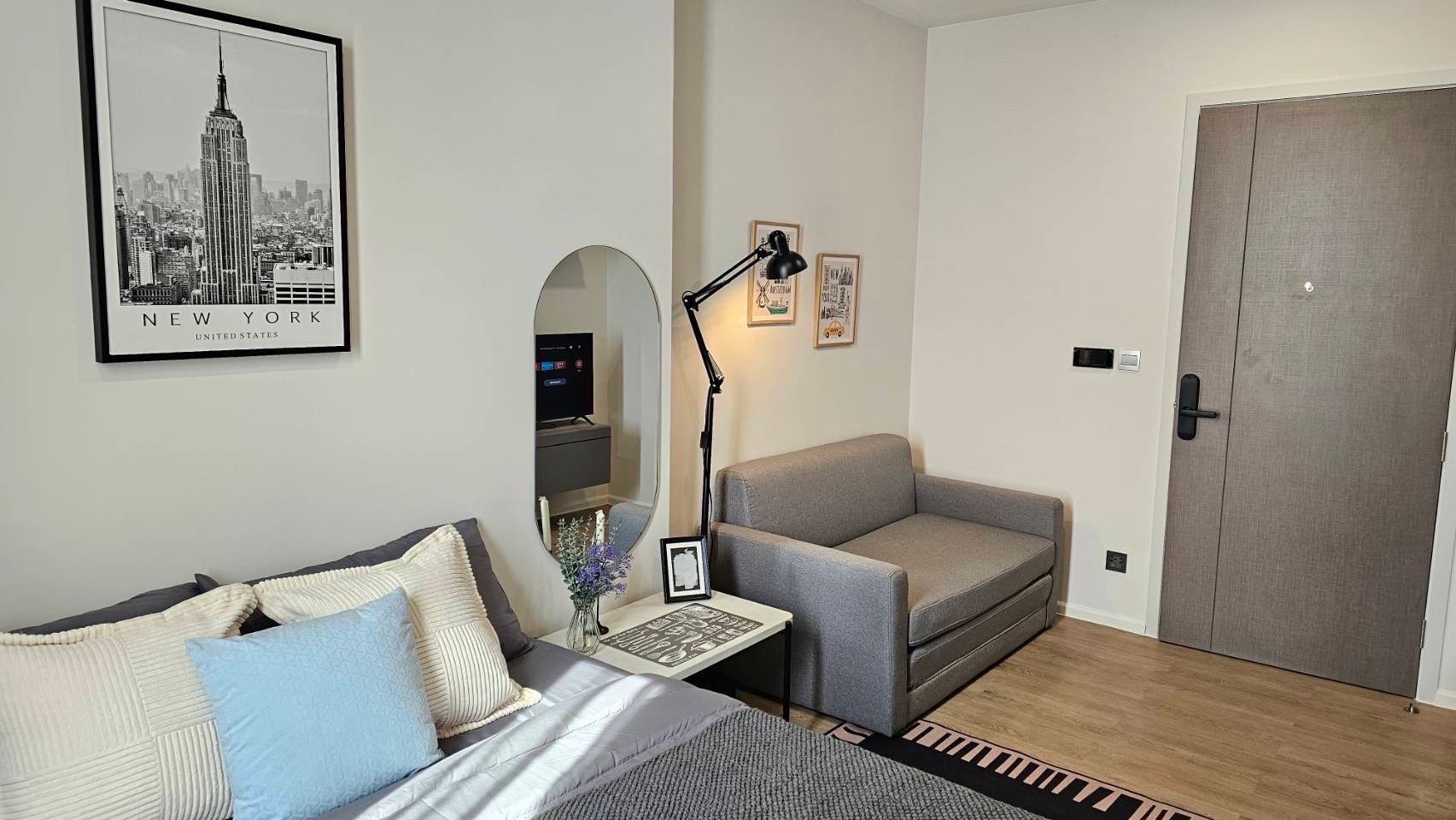 ให้เช่า โมดิซ ไรห์ม รามคำแหง (Modiz Rhyme Ramkhamhaeng) สตูดิโอ (มีกระจกกั้นห้องครัว) ขนาด: 24 ตร.ม. ชั้น: 18