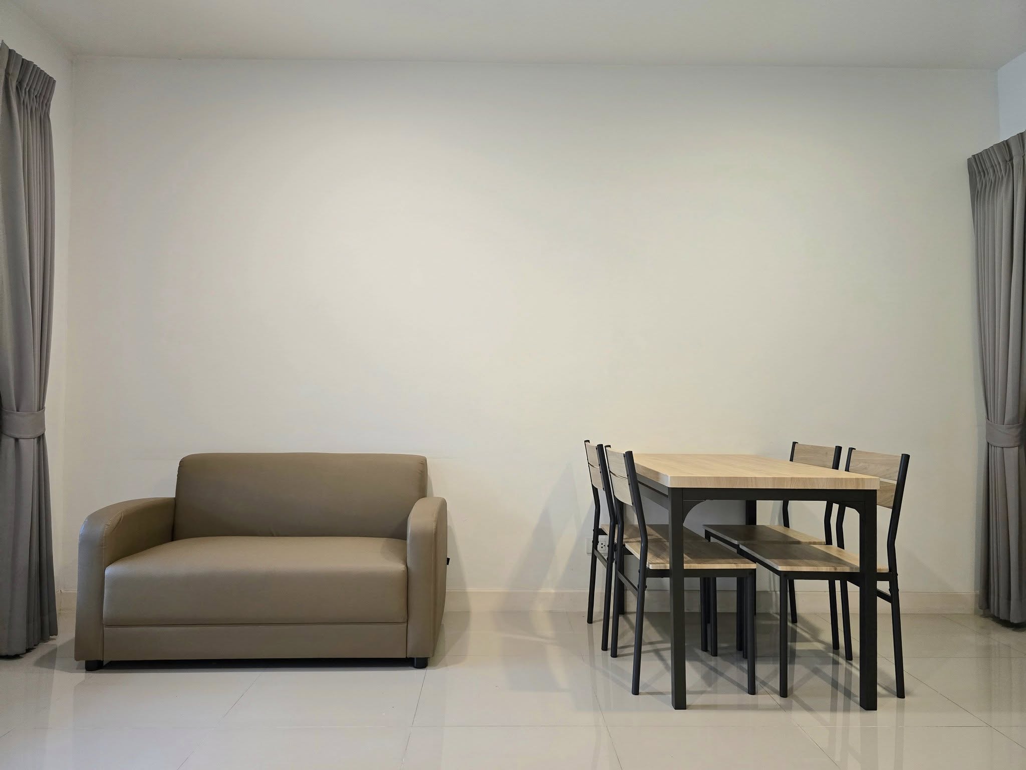 เตียง 6 ฟุต และ 3 ฟุต โซฟา โต๊ะทานอาหาร + เก้าอี้ ตู้เสื้อผ้า โต๊ะเครื่องแป้ง และ Digital door lock
