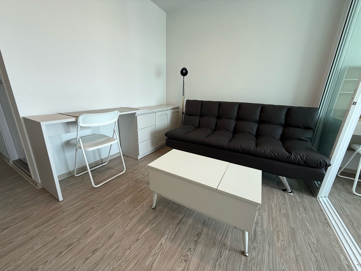 โซฟา เตียง 5 ฟุต ตู้เสื้อผ้า ครัวบิวท์อิน และกระจกกั้นห้อง