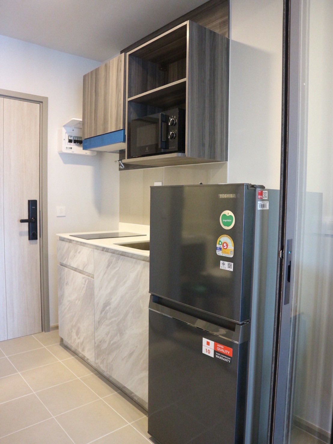 แอร์, สมาร์ททีวี 55", ตู้เย็น 2 ประตู, เครื่องซักผ้าฝาหน้า, เครื่องทำน้ำอุ่น, ไมโครเวฟ, เตาไฟฟ้า + เครื่องดูดควัน, Digital Door Lock