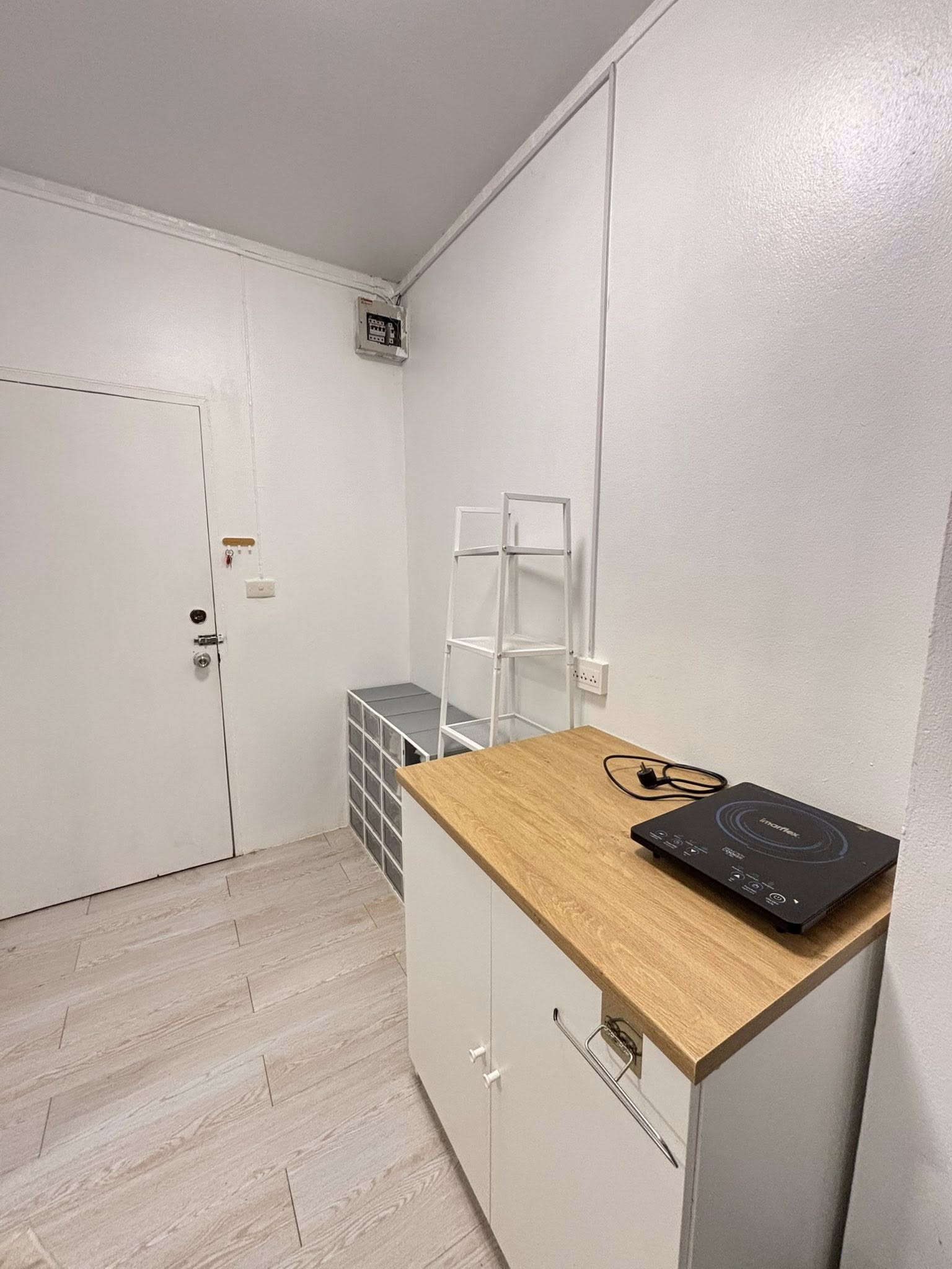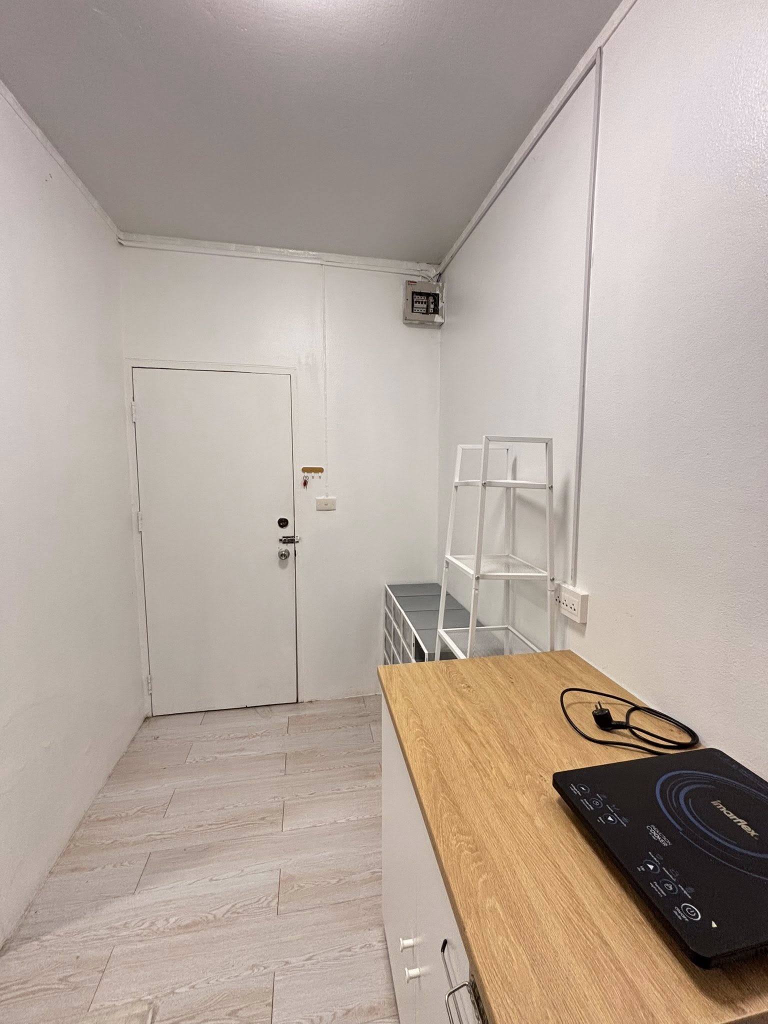 เตียงขนาด 5 ฟุต, แอร์ 1 เครื่อง, ตู้เย็น, ไมโครเวฟ, เตาไฟฟ้า, เครื่องทำน้ำอุ่น