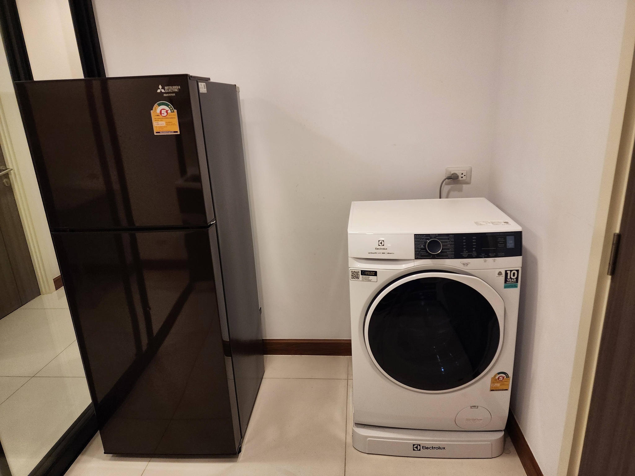 มีทีวี ตู้เย็น เครื่องซักผ้า ไมโครเวฟ แอร์ 2 เครื่อง และเครื่องทำน้ำอุ่น