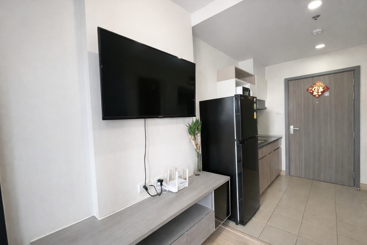 ภายในห้องมีเครื่องใช้ไฟฟ้าและเฟอร์นิเจอร์