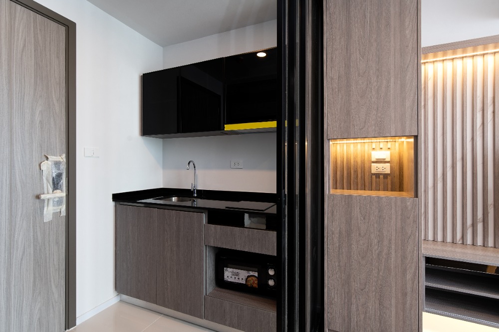 มีเฟอร์นิเจอร์บิ้วอินทั้งห้อง พร้อมโซฟาเบด เตาไฟฟ้า และ Walk-in Closet